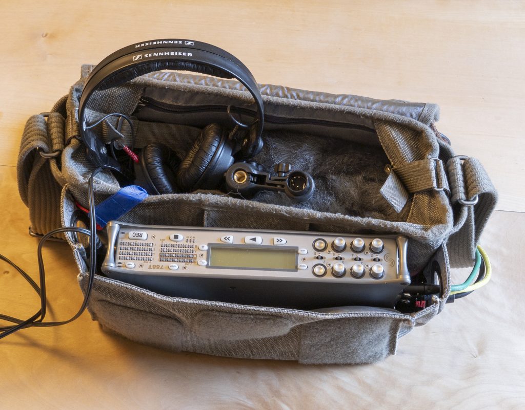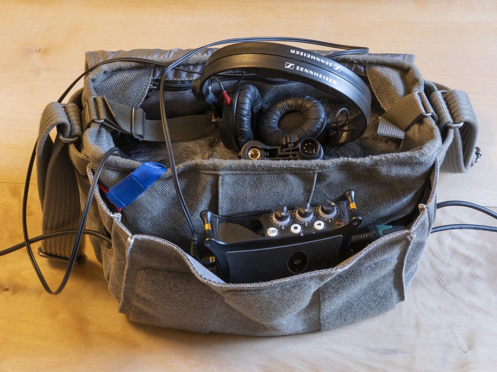 Bags for audio location recording are made a plenty, for all sorts of sizes of mixer/recorders and ancillary gear. But they have one thing in common: they are all geared for production sound or similar use. I’ve had several over the years, and just have one nowadays for a Sound Devices 788T paired with an CL-8. It’s fine for when I am recording or mixing sound for film/video, but I’ve never got on with such bags for field-recording. For that I’ve found the needs are quite different as, if not hiking and requiring a backpack (and for that I use a Vango Trail 35 or a North Face Borealis), I want a shoulder bag that has several attributes missing from a sound bag: it needs to be discreet, and must have capacity for additional things such as pens, notebooks, cables, a camera, mics and a windshield. Even a bottle of water. More to the point it must be able to carry those things – especially little items – securely: sound bags are so permeable that even if you can fit additional items in them, there is a high risk of them slipping out, which ain’t too good if you are knee-high in nettles, squatting in the salt marsh, or strolling down the Kilburn High Road. Equally, a production sound bag has things I simply don’t need in the field: I don’t need a raft of pockets for wireless receivers; I don’t need a clear plastic lid to allow me to ride the faders for a live mix while standing in the rain; and I don’t need to be able to connect a harness. I’ve seen many persisting with audio bags in the field and have no idea why so many do: being charitable, perhaps they find them perfect in a way that I simply don’t; or, being less charitable, perhaps they think a sound bag must be the right tool even if there’s no boom pole or actor in sight, and just suffer the inconvenience? I suspect a mix of the two. And, of course, while a production sound bag might be the right tool for one day’s field recording, it might be the wrong too for the next day’s session, even in the hands of the same recordist.