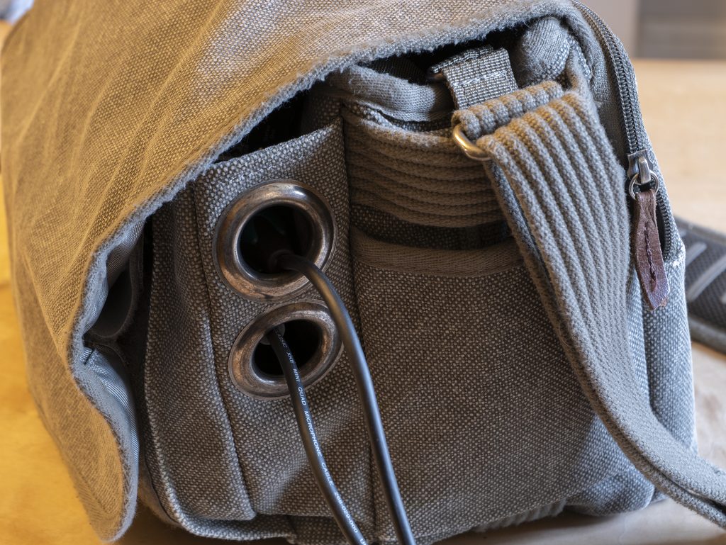 Anyway, I can only speak for myself (evidently!) and I’ve long used other bags for most field recording projects. The ones I have used – initially bought for cameras – for many years have been the rather lovely thick canvas Think Tank Retrospective bags. Of these, my favourite for field recording is my smallest one: the Retrospective 7. It’s smaller than my production sound bag, yet is so more space efficient. In short it’s my perfect small rig field-recording bag apart from one slight niggle: it’s a little fiddly routing mic cables from the sides of the mixer/recorder since, of course, the bag lacks the side exits for cables that I have just lambasted in production sound bags. OK I could have low-profile XLR jumpers, but that rather goes against the streamlined minimalism in the field. At the back of my mind for years has been the thought that one day I would find some massive eyelets to make a few neat holes that would help with cables, but which wouldn’t throw out the baby with the bathwater and lose the fact that the bag could hold things safely like…well, like a bag should!
