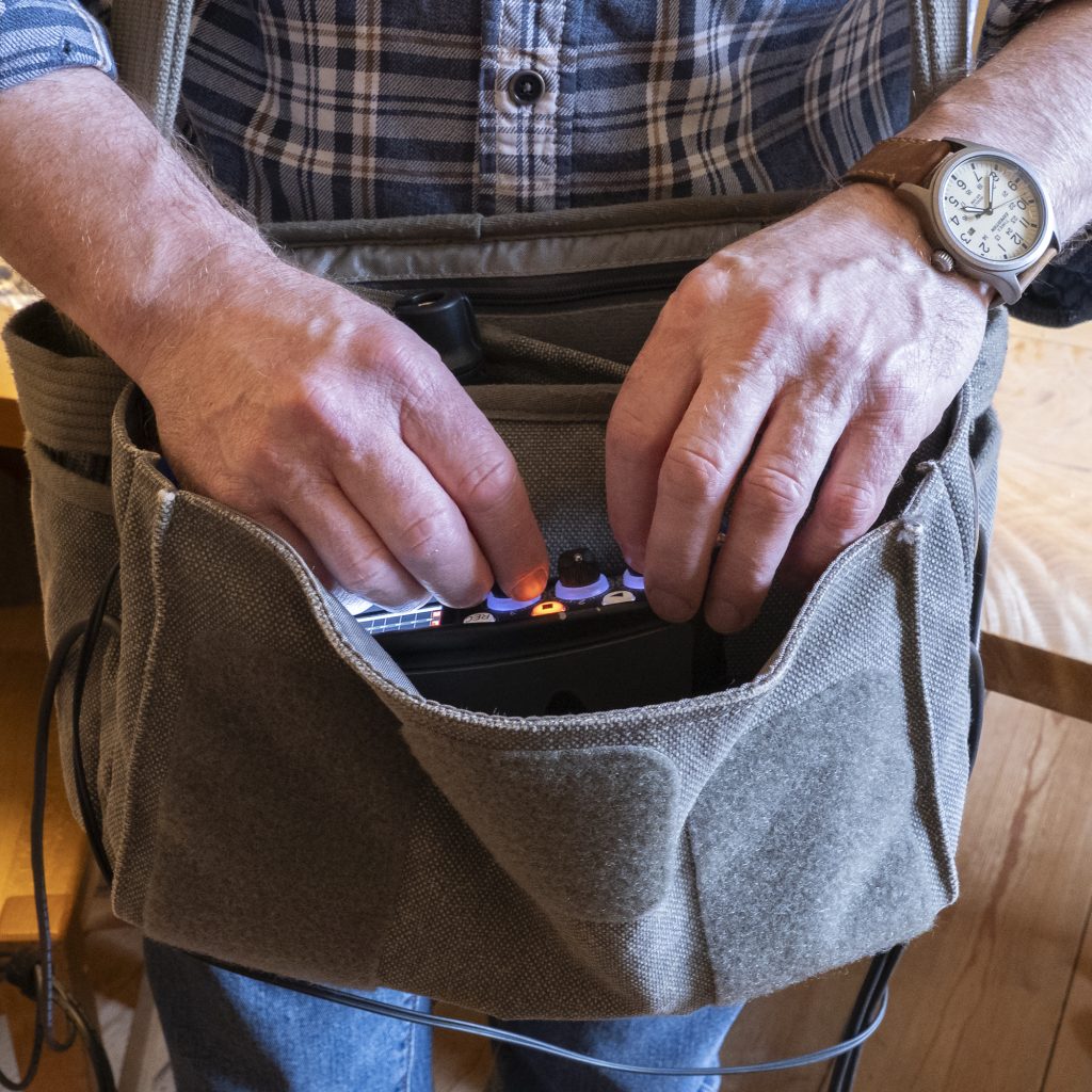 Now, it is entirely reasonable to wonder why on earth would anyone write a blog post about making four holes in what was a perfectly nice bag beforehand? On one level it is as silly as posting a photo of a meal you are meant to be eating or, worse for others, a live gig you are meant to be enjoying (yes, I can be a stereotypically grumpy middle-aged bloke), but there may be someone out there who is unthinkingly struggling with a production sound bag, perhaps attracting unwanted attention when not actually recording, and losing items in the long grass. And there may be someone out there who has never come across the Retrospective bags or some other equally useful equivalent, or, if they have, hasn’t got to grips with whatever little niggle that stops it being the perfect field-recording bag for them. If so, this blog post is for you: get hold of an eyelet punch or whatever tool you need, and get butchering your bag. Just don’t blame me when it all goes wrong. And if you find production sound bags perfect for all field recording uses, then that’s fine, of course, though I suspect you won’t have reached the end of this post!