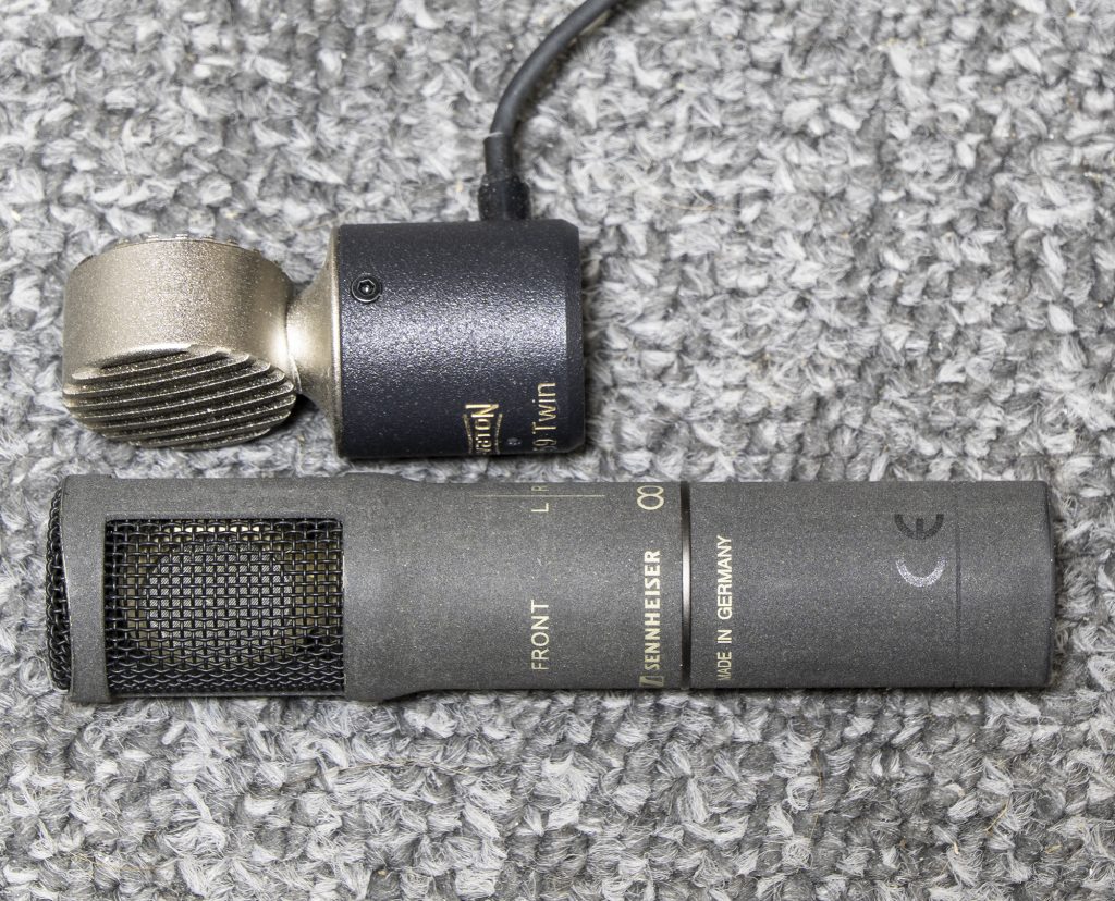In my previous blog post on the Nevaton MC59-8 (fig 8) and new MC59 Twin mics, I touched briefly – as an aside – on the question of using the MC59 Twin or, indeed, any similar twin mic (such as the Sennheiser MKH 800 Twin) for mid-side (MS) recording on its own: i.e. without a second mid mic. This means using the combined output of the two (cardioid) capsules with the rear (or right) out of phase to create the fig 8,and simultaneously using the two outputs combined in phase to create the omni. Evidently this allows the single mic to be used for omni MS, although no other variation of MS (i.e. with a different polar pattern for the mid mic) is possible with such usage: only the omni pattern will create a mid mic at 90 degrees to the side (fig 8) mic. Of itself this isn’t a problem since, while many assume a cardioid or, perhaps, a supercardioid mid mic only is necessary for satisfactory results for MS, an omni mid mic is eminently usable, even desirable, in many situations. Indeed, in a previous post I provided (simultaneously recorded) comparisons of MS rigs with different polar patterns – the MKH 8020 (omni), MKH 8090 (wide cardioid), MKH 8040 (cardioid) and MKH 8050 (supercardioid) – so you can hear how they compare. Rather, assuming omni MS is appropriate for the recording, the issue with using a twin mic on its own for MS is to do with the fact that the polar pattern of an omni created by the two diaphragms is imperfect: whereas most SDC omni mics are also imperfect, typically becoming more directional from, say, around 8kHz (I am thinking here of the polar pattern of my MKH 8020 mic), the frequency response on axis remains consistent, while the omni polar pattern of a dual-diaphragm mic is best at the front and rear (i.e. on axis to the individual diaphragms) but sees significant high-frequency fall off at 90 degrees, as illustrated in my previous post. This isn’t a particular issue if using a twin mic as an infinitely variably patterned mid mic in MS in conjunction with a separate fig 8 mic, since the mid mic is facing forward to the assumed focus of the sound source. However, when using a twin mic on its own for MS, the two diaphragms are necessarily facing sidewards for the fig 8, so the omni mic (created from the same two capsules) is aimed poorly for sounds directly in front of the mic. On the positive side, though, the fig 8 and omni mic are truly coincidental, having none of the vertical separation of the two mics in a normal MS pair.