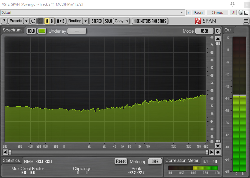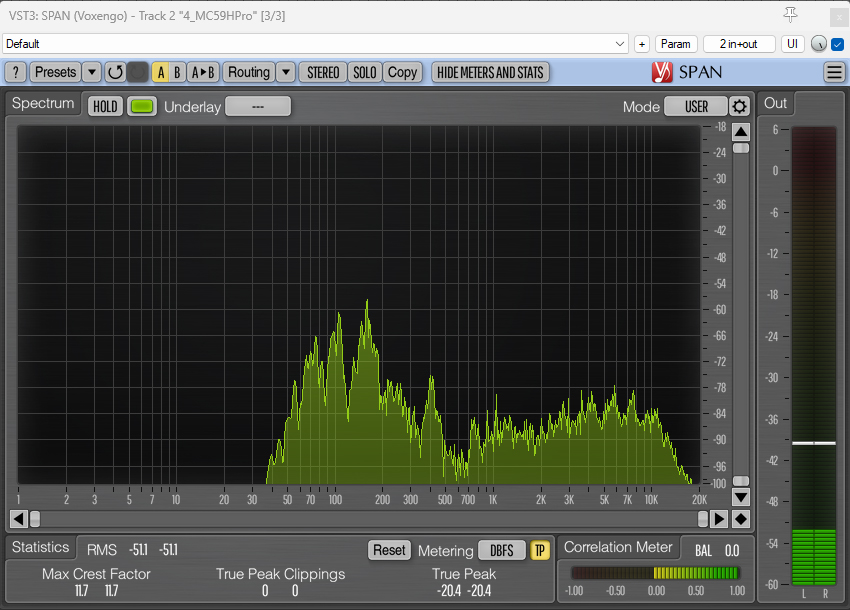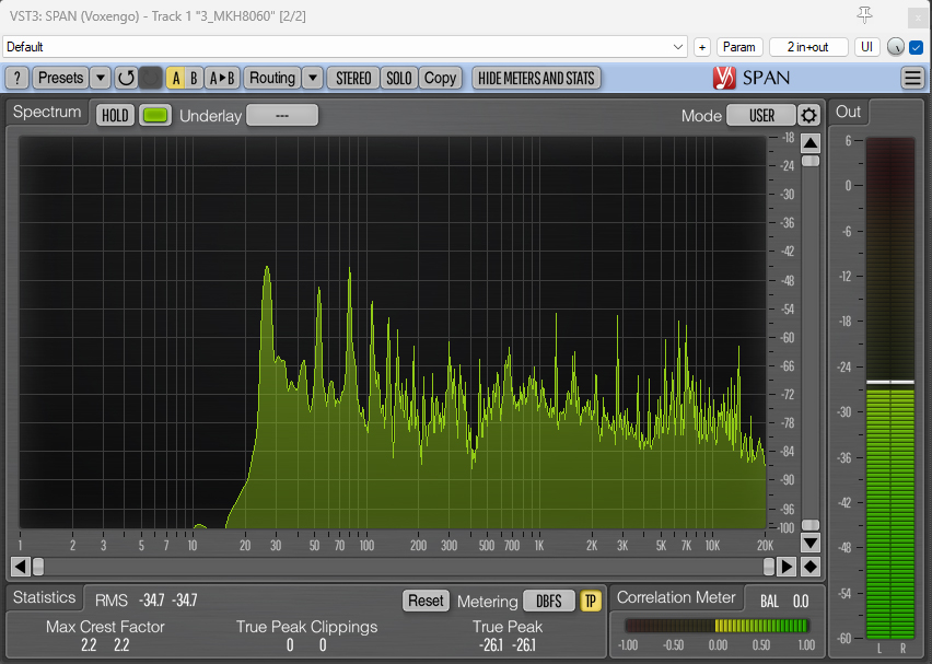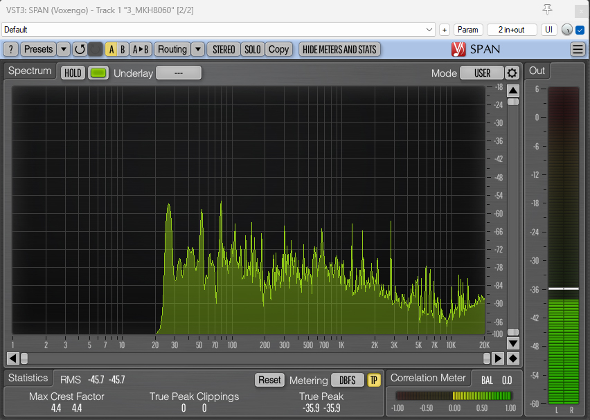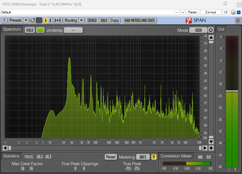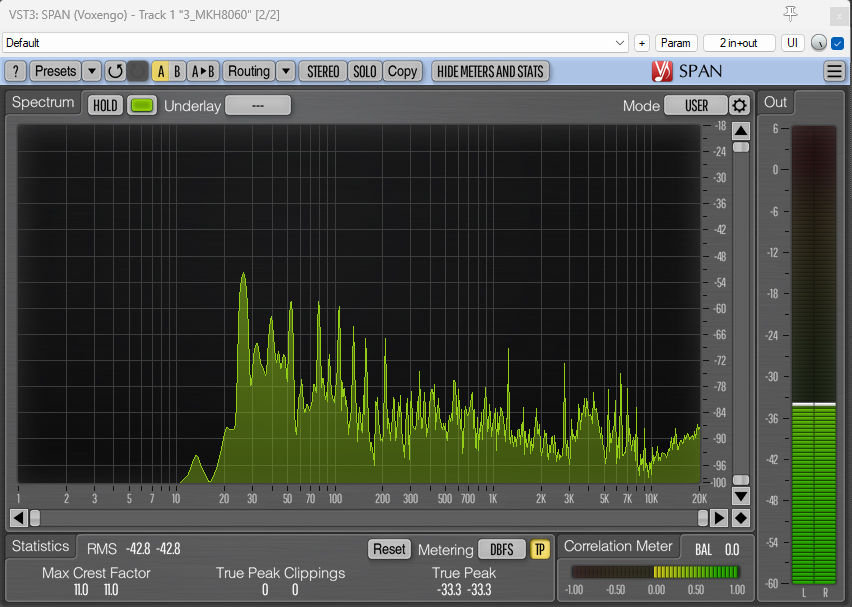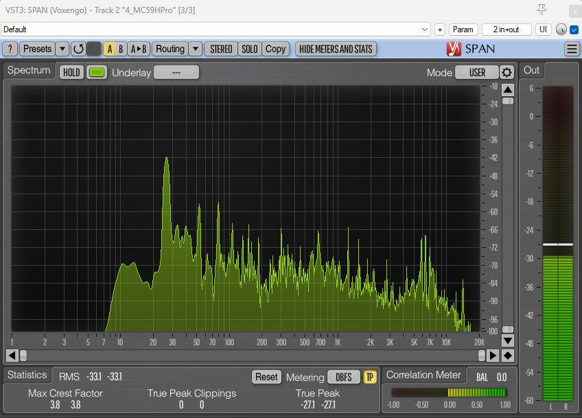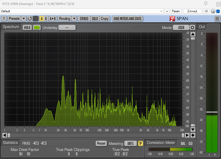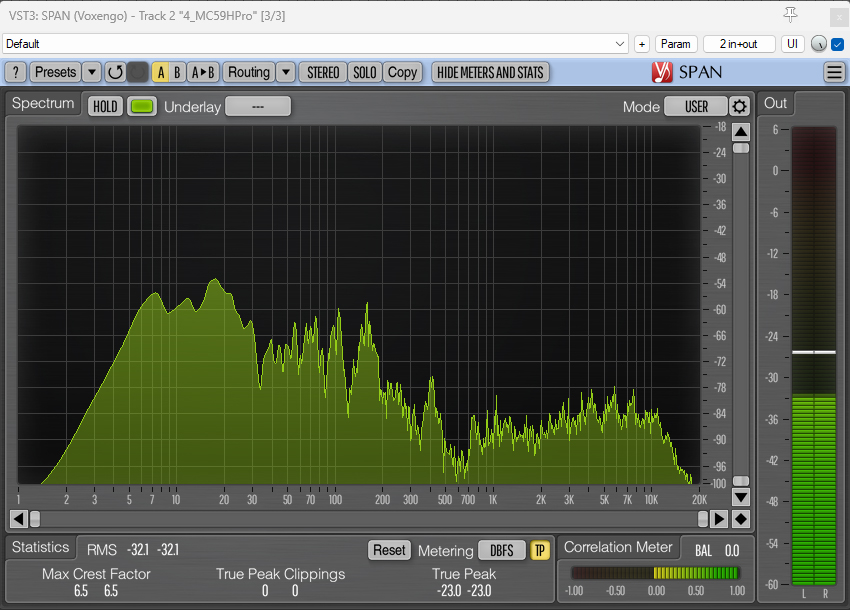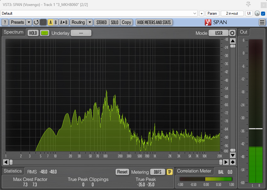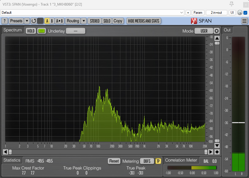 And here are the spectrum analyzer visualizations with the 80Hz HPF applied: