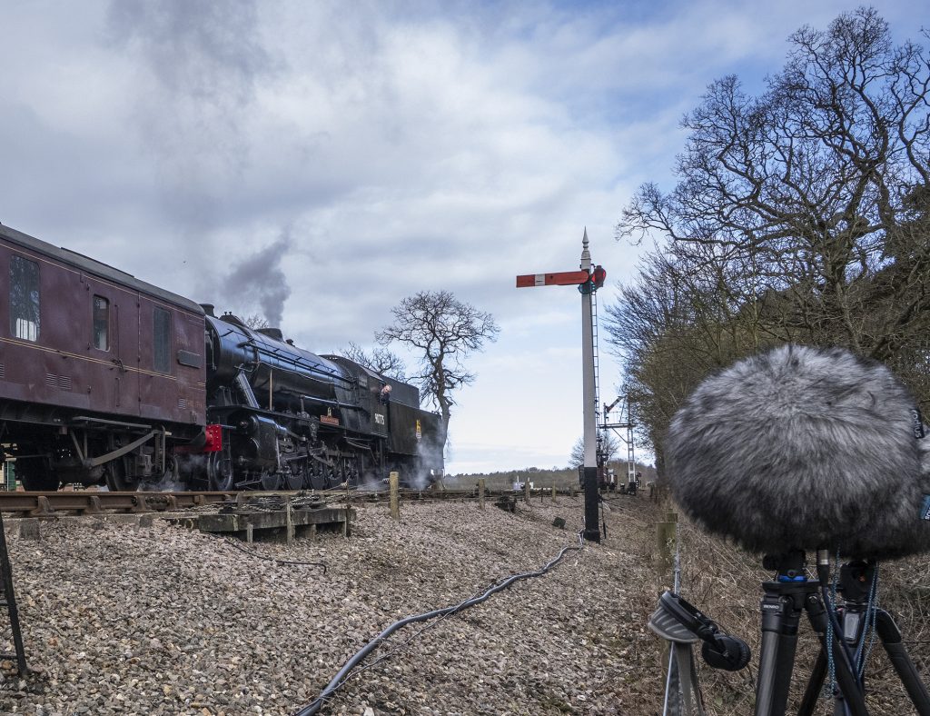 As so often featured in these blog posts (too often now perhaps?!), I went down to the local steam railway again for a recording test. It might be getting a bit repetitious, but, nonetheless, as a sound source it seems to have a good bit of variety in terms of frequency (from steam hissing, to low-frequency rumbling and engine noises, the latter especially evident in this case with the diesel locomotive pushing the train too), as well as movement. And, as ever, the larger furry windshields gave the chaps in the signal box a good laugh! Anyway, here we go with the two recordings: