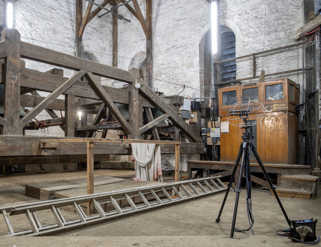Kicking off with high frequencies, I returned to one of my old haunts in the belfry of Norwich Cathedral where the overtones of the bells provide an interesting sound source. Sticking with the MKH 8060 comparison (as I do for most of this blog post), I rigged this and the MC59/H Pro in a Mega-Blimp (as usual, there was a bit of a breeze blowing through the belfry), and recorded the mics into a Sound Devices MixPre-3. Here are the resultant recordings: